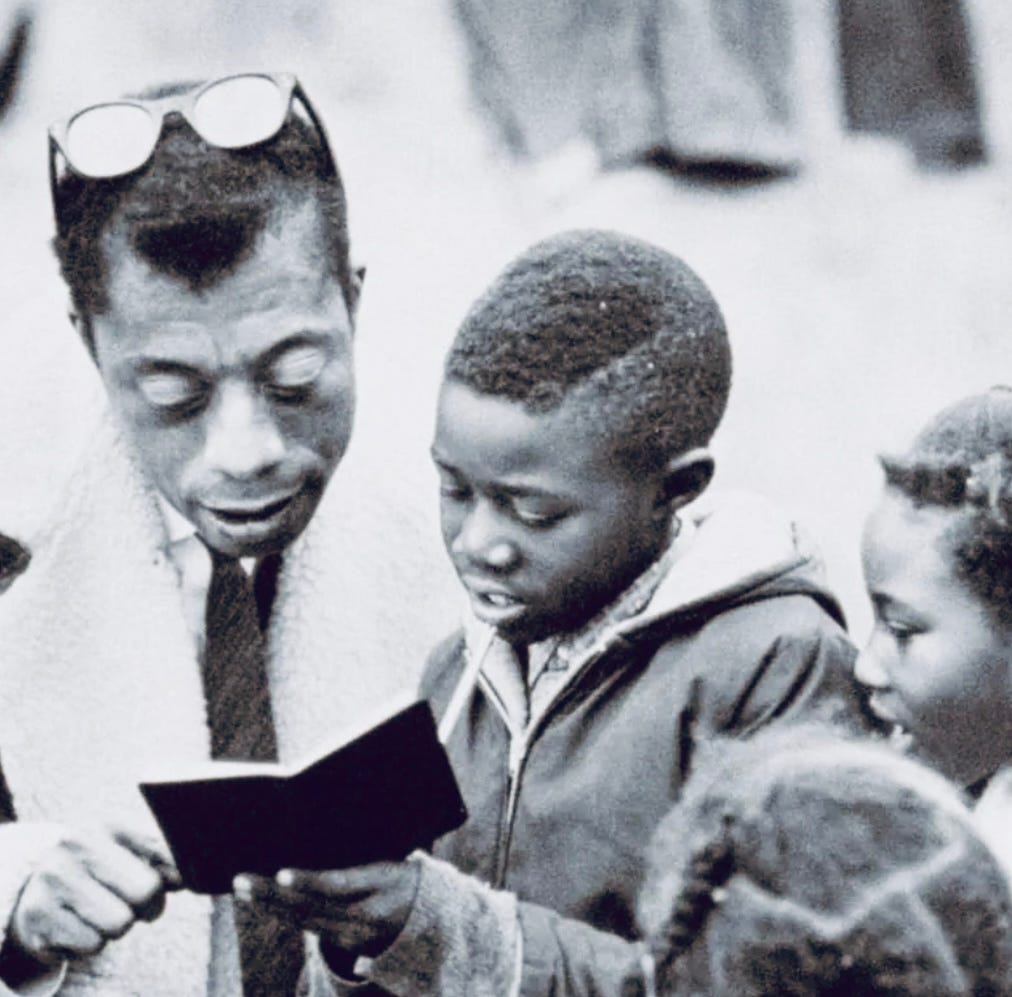(James Baldwin (1924 – 1987) reads a book with a group of children, Durham, North Carolina, 1963. Photo by Steve Schapiro/Corbis via Getty Images)